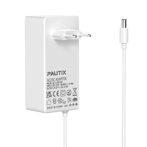 PAUTIX LED-ljusremsa EU-kontakt DC24V 2A strömförsörjning för LED-remsor, AC100-240 LED-drivrutiner nätadapter, 48 W max plug-in strömförsörjning (vit)