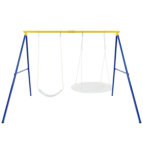 GOPLUS Gungställ utomhus, gungställning av metall som kan belastas upp till 300 kg, barngungställning med pinnar och karbinhakar, trädgårdsgunga, ram för boggunga och nätgunga (endast ram)