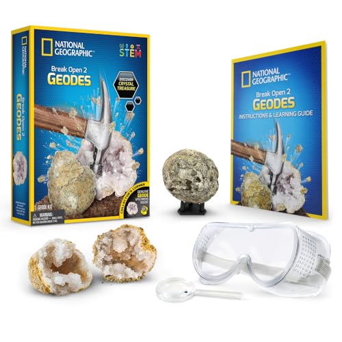 Giochi Preziosi National Geographic – Crystal Science Kit, Upptäck en dold skatt, inklusive geoder av hög kvalitet, säkerhetsglasögon, utställare och pedagogisk färgguide från 6 år