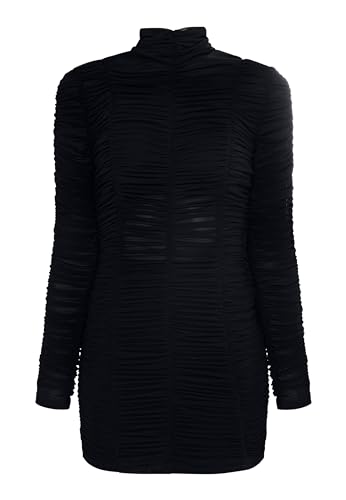 Zebaexf Nätklänning för kvinnor lång puffärm mini bodycon söt hals fest miniklänningar för kvinnor, Mesh-svart, XS-S