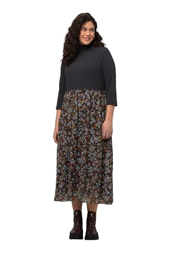 Ulla Popken Nätklänning för kvinnor med ribbtopp klänningar, asfalt, 42/44