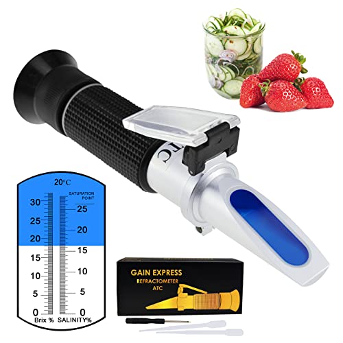 2-i-1 Brix Salinity Refraktometer Dubbel skala 0-32% Brix & 0-28% Salinitet med ATC-natriumklorid i mat salt havsvatten saltlösning öl frukt skär vätska