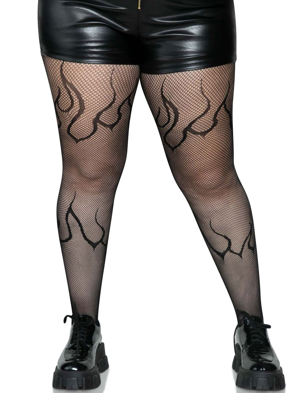 Svarta Nätstrumpbyxor med Flammigt Mönster Plus Size