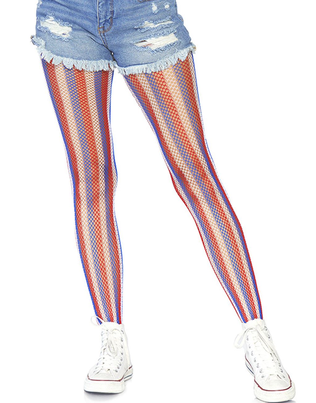 Röd, Vit och Blå Randiga Nätstrumpbyxor