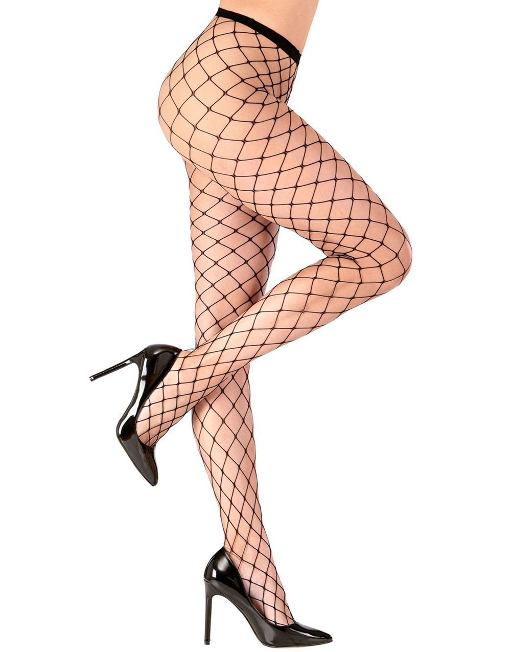 Vita Nätstrumpbyxor med Stora Diamantrutor