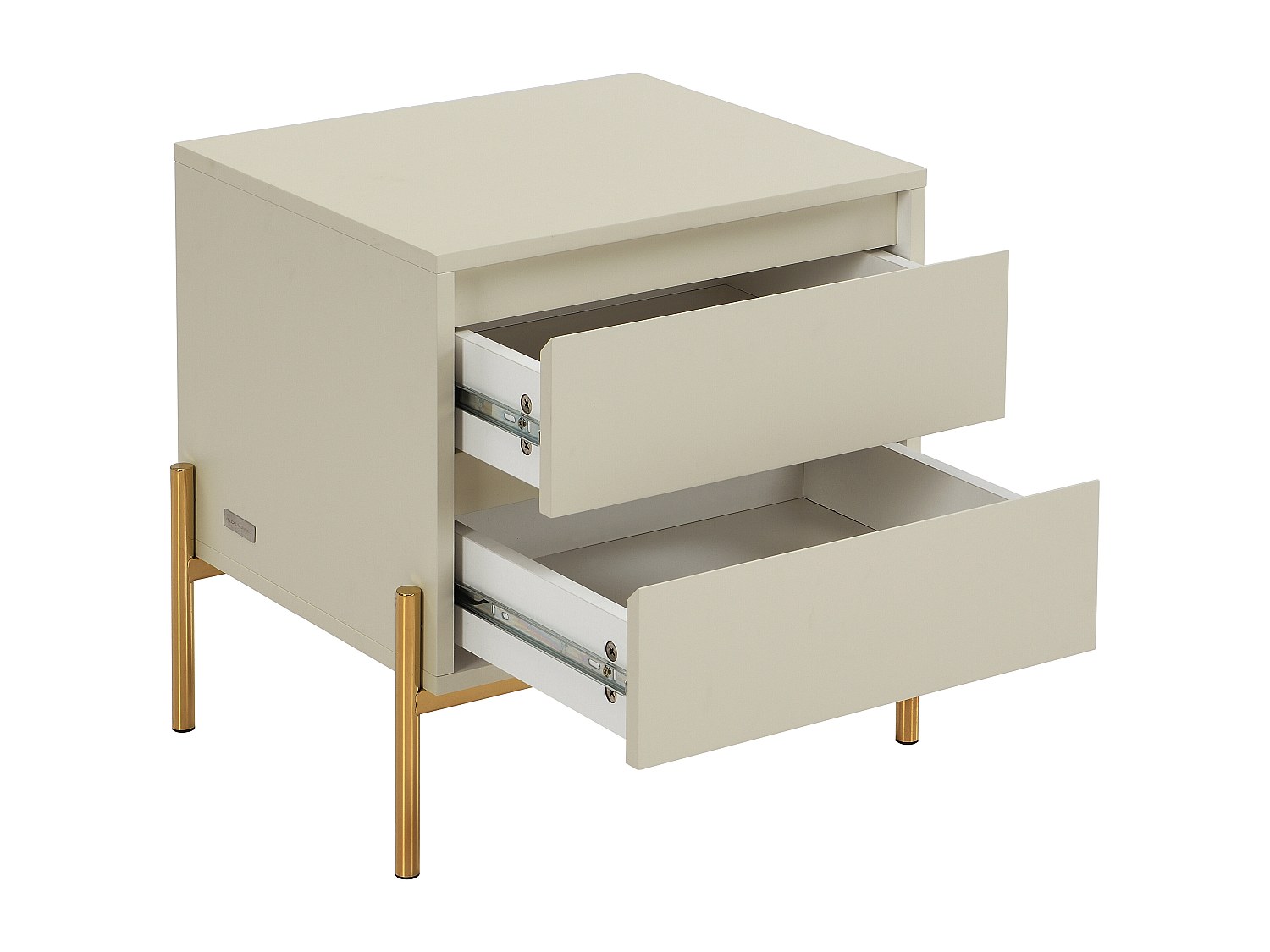 Set med 2 nattduksbord med 2 lådor i vitlackerad MDF och guld metall KORASA från Pascal Morabito