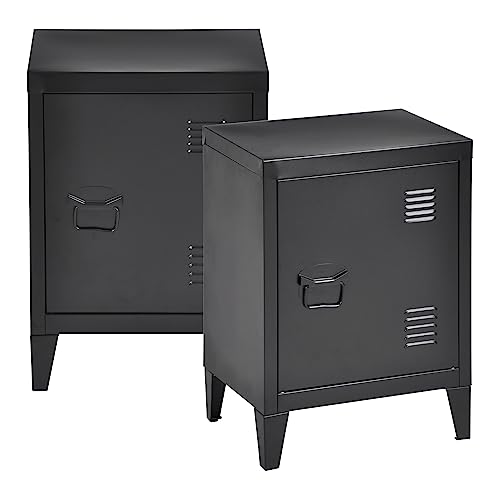 [en.casa] Sängbord Inari Mörkgrå Med En Skåpdörr, Soffbord, Dörrhandtag Vänster, Metall Nattduksbord 57 x 40 x 30 cm, Kontorsskåp