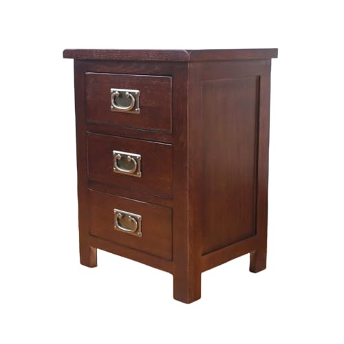 Kemtpase Sängbord i massivt ek, valnöt, trä, 3 lådor, nattduksbord, moderna smala sidoskåp för sovrum, vardagsrum, sidobord, möbler, 40 x 30 cm