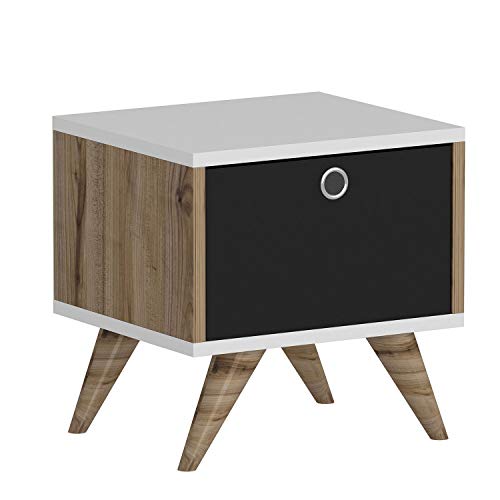 Homemania M.01.03.30.01430 Nattduksbord Zeyn Modern Platsdörr med vardagsrumsdörr, Sovrum Valnöt, Svart, Vit i Trä, 40 x 35 x 41 cm
