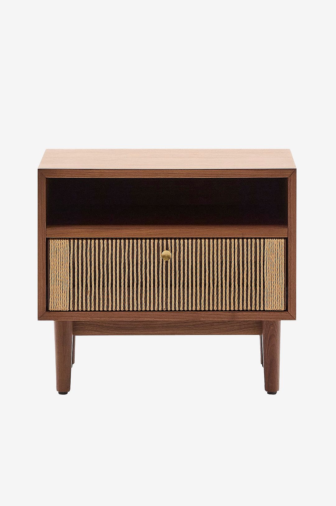 Kave Home - Elan nattduksbord i fanér och massiv valnöt med sladd 51x45cm 100%. Fsc - Brun - Sängbord - Från Homeroom