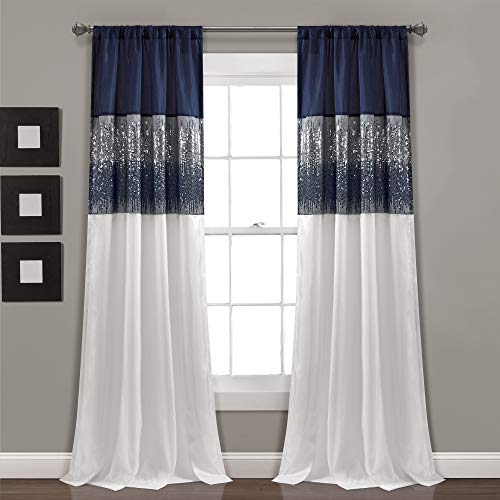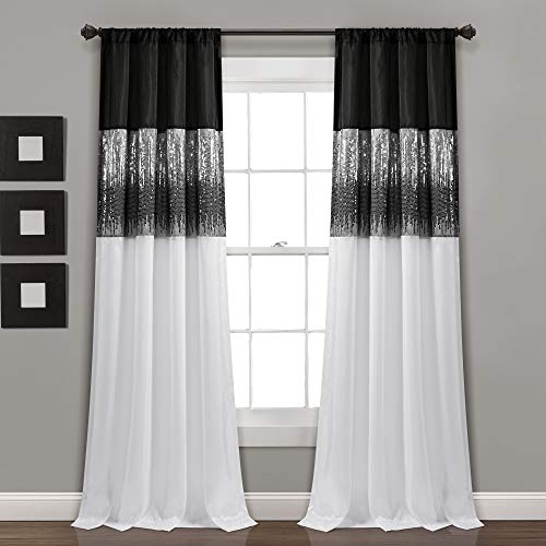 Frodig dekor natthimmel fönstergardinpanel, enkel, 107 cm B x 241 cm L, svart och grå – paljettgardiner – glitter och färgblock design – modern glam dekor – långa gardiner för sovrum och vardagsrum