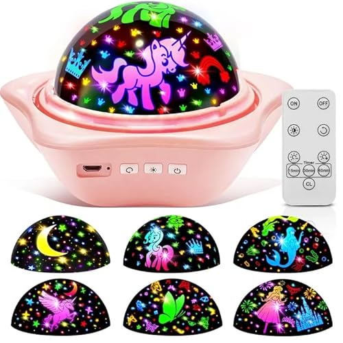 Tesoyzii Enhörning, presenter för flickor 2 3 4 5 6 7 8 år, stjärnhimmel, projektor, barnlampa, enhörning, leksak från 3–9 år, flicka, projektor, barn, nattlampa, flicka, presenter, födelsedag