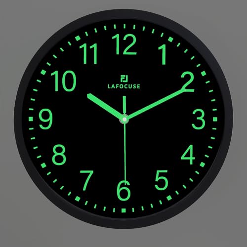 Lafocuse 30 cm lyser i mörkret väggklocka svart tyst tickar inte, modern nattlampa lysande väggklockor batteridriven för vardagsrum dekor sovrum kök kontor