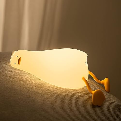 URAQT Nattljus Silikon Touch Anka, Nattljus Baby Småbarn Flicka Pojke Vuxen med timer och telefonhållare, Uppladdningsbar LED Baby Nattlampa Bärbar present Kawaii Deco