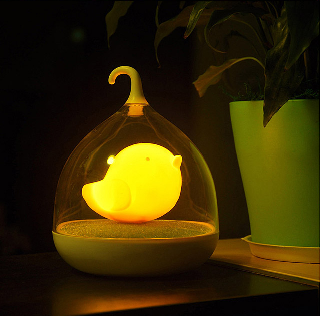 Baby Nattlampa, Söt fågel LED-lykta i Totoro-stil, uppladdningsbar, vibrationsensor - Gul
