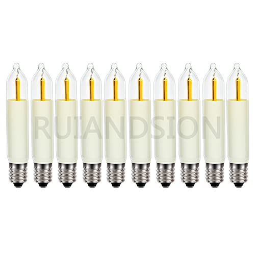 Ruiandsion E10 LED-lampa 14–55 V 0,1–0,5 W ljuskrona hänge nattlampa dimbar kandelaber apparat låg värme för sovrum vägglampetter kylskåpslampor, varm vit (paket med 10)