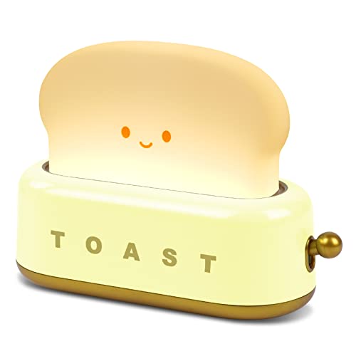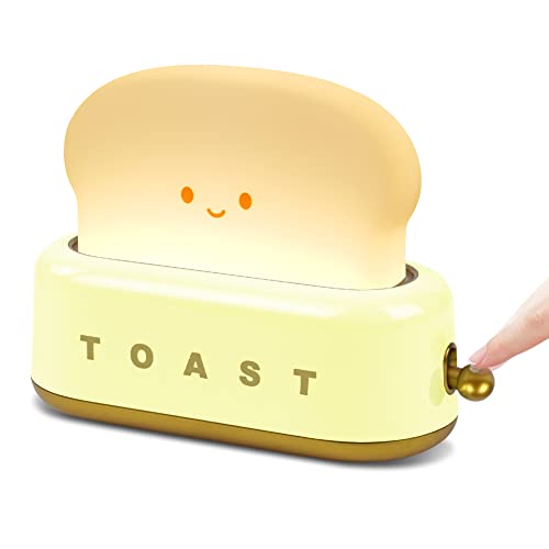 URAQT brödnattlampa, kan tidsinställas Söt rostat brödlampa, USB uppladdningsbar dimbar nattlampa för barn, sängbordsdekor i sovrummet, barnvänlig födelsedagspresent(Gul)