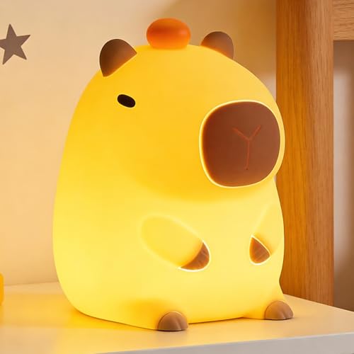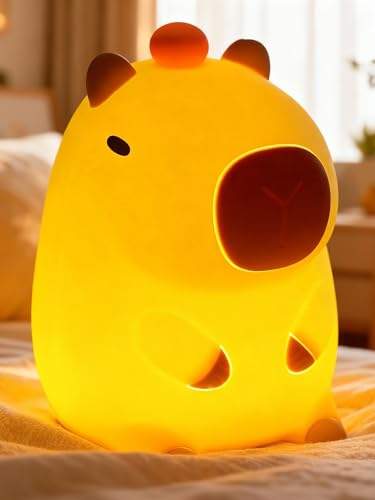 Amaredom Capybara nattlampa, söt capybara-lampa, silikon, dimbar, nattlampa för barnkammare, uppladdningsbar LED-sänglampa med 20 minuters timer och tryckkontroll baby flickor kvinnor sovrum,