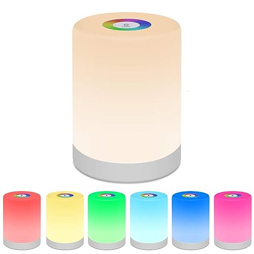 FOMYHEARD Nattlampa med touchfunktion, dimbar, 4 lägen och 256 färger, RGB-förändring, LED-nattlampa, nattlampa för barn, USB-laddning, trådlös bord för sovrum