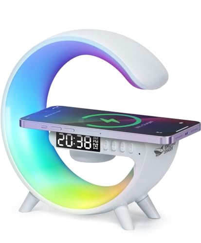WQIAOBX 2023 Ny Smart Bordslampa,Trådlös Laddare Atmosphere Lamp Bluetooth -högtalare,dimbar nattlampa Touch-lampa med musiksynkronisering,Tillämpningskontroll,Perfekt för vuxna barn (Vit)