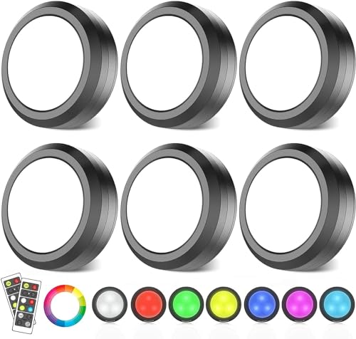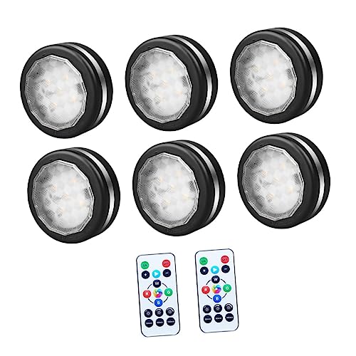 MOUJUCHI RGB Underskåp Lampor - Trådlösa LED-Lampor Batteridrivna, Dimbar Nattlampa Med Fjärrkontroll för Kök, Garderob, Trapphylla - 6-Pack