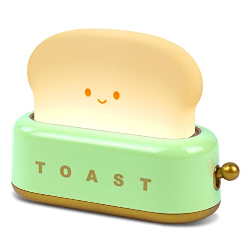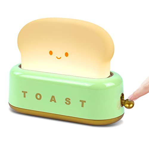 URAQT brödnattlampa, kan tidsinställas Söt rostat brödlampa, USB uppladdningsbar dimbar nattlampa för barn, sängbordsdekoration i sovrummet, barnvänlig födelsedagspresent(grön)