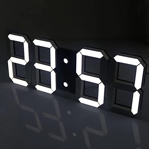 DELIPOP Digital väckarklocka med 3D och LED, väggklocka, digital klocka, LED-bordsklocka, dimbar nattlampa, snooze-funktion, kalender, termometer, timdisplay, för hemmakontor, sovrum (svartvitt ljus)