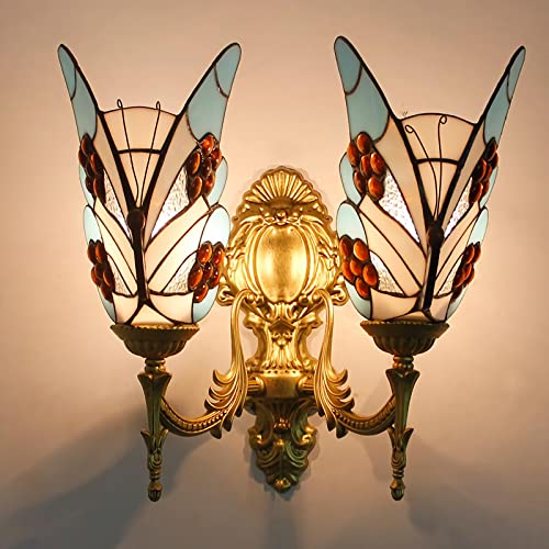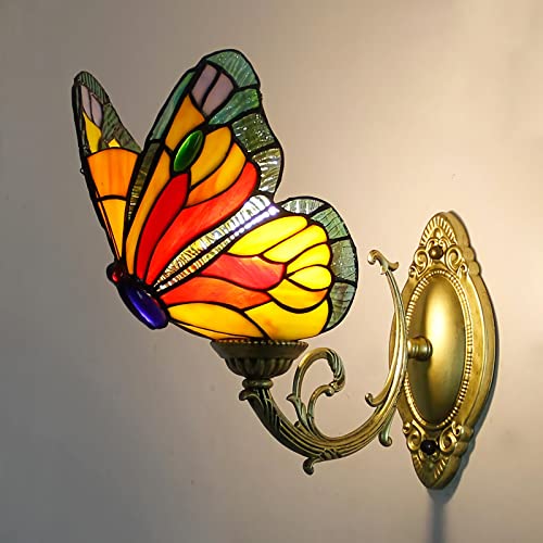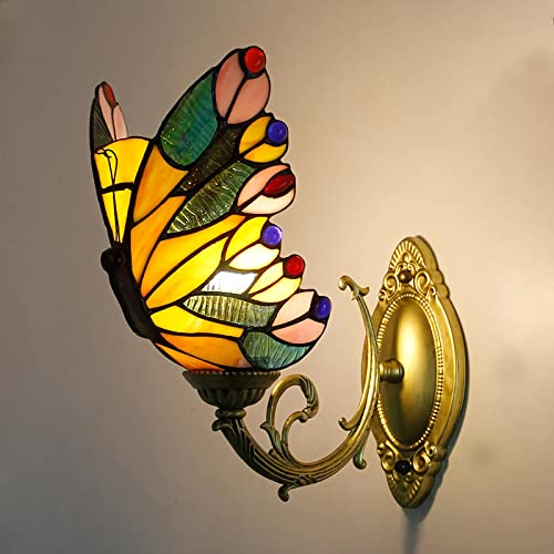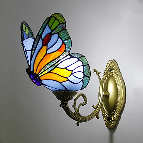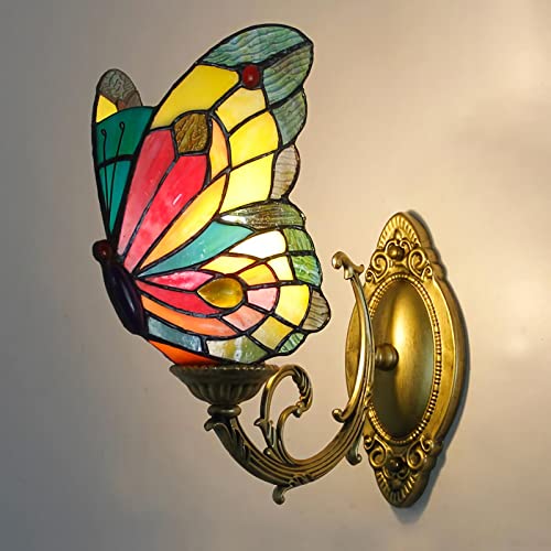 Tiffany Fjäril Vägglampor, Färgat Glas Rum Nattlampa, Dimbar Modern Retro Kristall Vägglampa För Vardagsrum Hall Sovrum Sänglampa