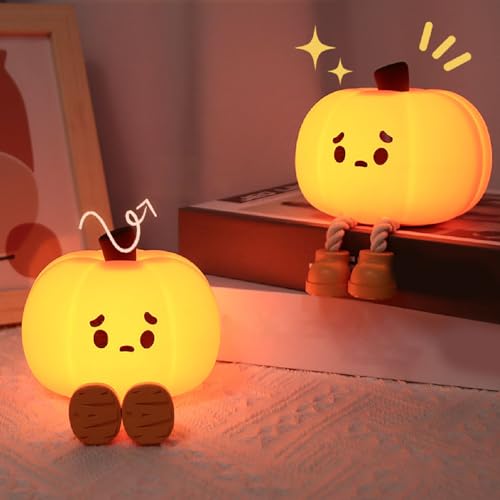 Wastou pumpa silikon nattlampa: 3-nivåers dimbar ljusstyrka, uppladdningsbar mjuk glöd squishy sänglampa, perfekt barnkammardekor för amning, småbarn, halloween dekor