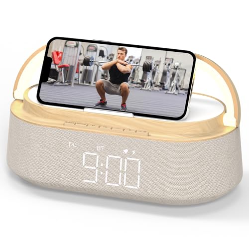 COLSUR digital klockradio med trådlös laddare, Bluetooth-högtalare med USB-laddare, smart väckarklocka med snooze-funktion, induktiv laddningsstation, nattlampa, dimbar LED-display och batteribackup