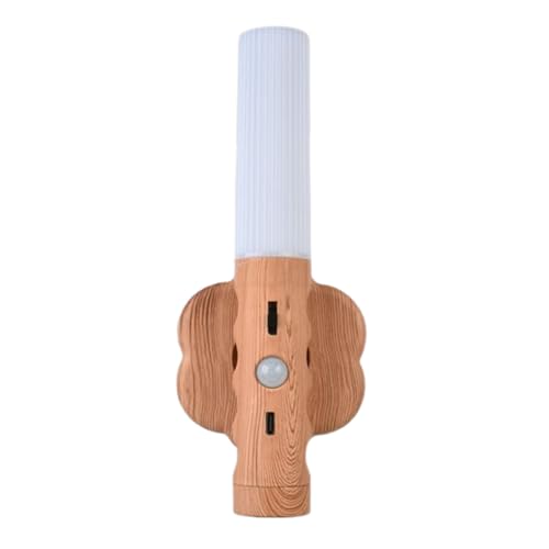 Träbatteri vägglampa med rörelsedetektor LED uppladdningsbar nattlampa upp sensor varmt ljus magnetisk trapplampa, 2 st.