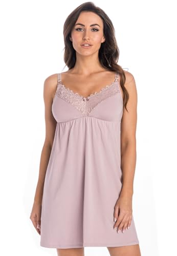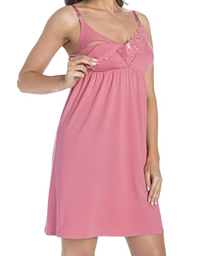Uniexcosm Nattlinne för amning, kortärmat bomullsnattlinne för gravida, kort spetsnattlinne med v-ringning, sovkläder för hemmet, M