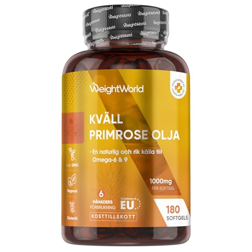 Nattljusoljekapslar veganska med Omega 6 & 9-1000 mg per softgel - 6 månaders förbrukning för 180 softgels med nattljusolja - GMO-fria och GMP-kompatibla - WeightWorld