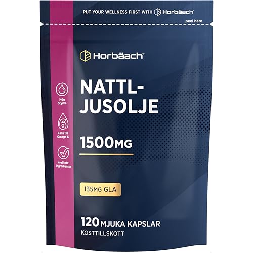 Nattljusolja 1500 mg | Evening Primrose Oil Capsules | 120 Softgels | Hög Motståndskraft Supplement med Omega 6 och GLA | Horbaach