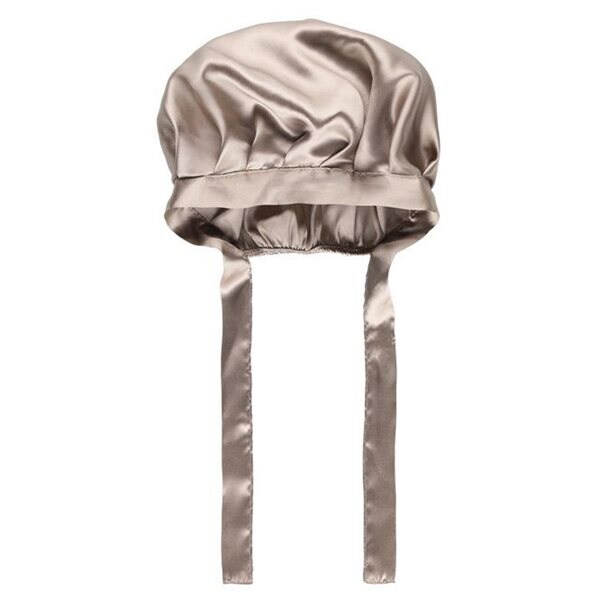 ZIMASILK Nattmössa i siden, 100 % mullbärssiden 22 mm, med elastiskt band och klassisk plissering, hårvård för kvinnor (1 st, beige)