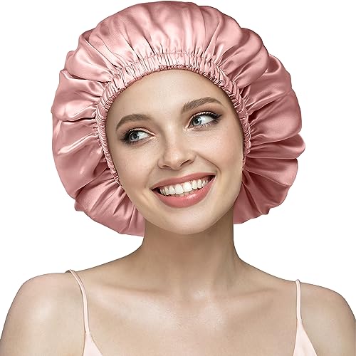 Umisleep Nattmössa i siden, 22 momme 100 % mullbärssilke, i dubbelsidigt siden, för lockigt hår, andas väl, justerbar, med gummiband för fastsättning på huvudet, ROSA, One size