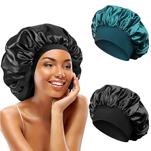 2 st natthår-satinmössa, satin-nattmössa, sidenmössa, natthår-mössa för kvinnor (svart, grön), 32cm