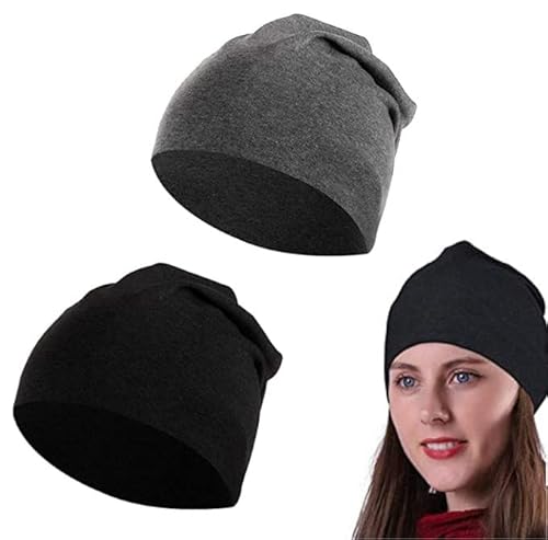 LYTIVAGEN 2 stycken mjuka sovmössor, unisex, slouch-beanie, mössa, andas, kemo, nattmössa, tunn mössa, huvudbonad för håravfall, cancer, kemoterapi, svart, grå, svart, grått, 19cmx16cmx2cm
