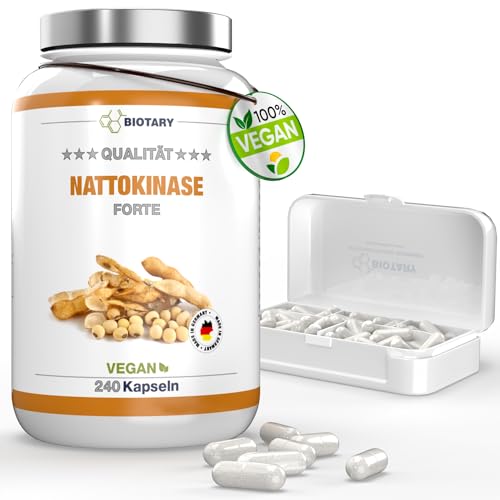 Nattokinase 240 kapslar 100 mg vardera (20 000 FU/g) - 8 månaders leverans - inklusive tablettbox - hög dos - laboratorietestad och vegan - gjord av GMO-fri soja - utan oönskade tillsatser