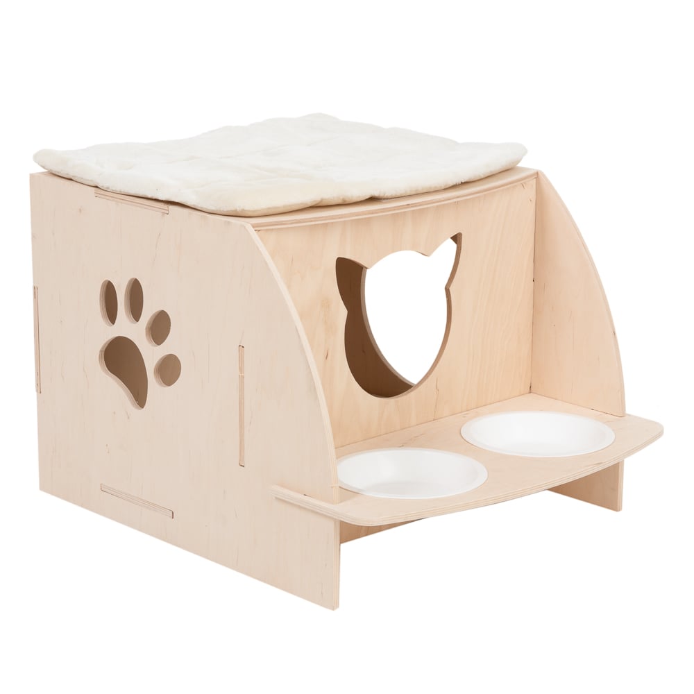 Natural Paradise kattgrotta Mimosa Naturligt trä med krämigt överdrag