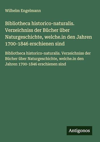 Bibliotheca historico-naturalis. Verzeichniss der Bücher über Naturgeschichte, welche.in den Jahren 1700-1846 erschienen sind: Bibliotheca ... den Jahren 1700-1846 erschienen sind