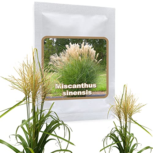 JÄTTE KINA GRÄS Kinesiskt Vass - ca. 100 frön - Silverfjäder - Miscanthus chinensis härdig - Magnifikt gräs för trädgården - perfekt som insynsskydd