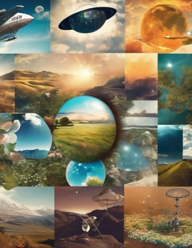 music notebook with notes, featuring themes of nature, space, technology