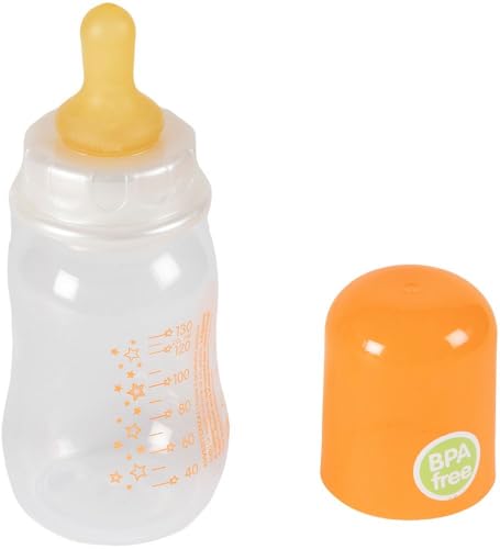 130 ml dekorerad cylindrisk nappflaska med naturgummi napp och spenskyddslock.
