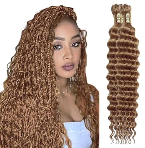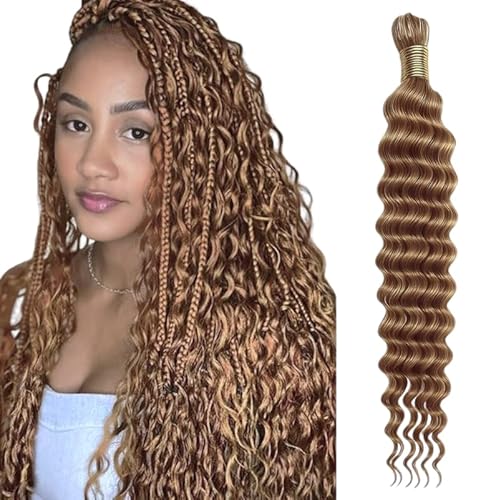 Mänskligt flätat hår boho flätor mänskligt hår 100 g (50 g 2 buntar) djup våg bulk hår vävning naturlig brasiliansk mänskligt hår No Weft Meche brasiliansk blond #27 Färg (22 22 tum)