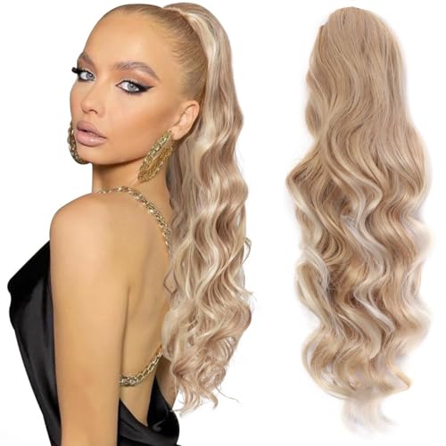 YEESHEDO Lång naturlig hårförlängning, vågig hästsvans för kvinnor, värmebeständigt hårstycke med dragsko, 60 cm (24 tum), blond