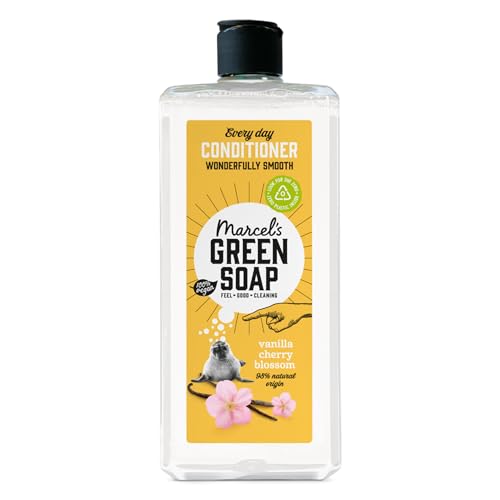 Marcel's Green Soap Every-Day balsam vanilj och körsbärsblomma – balsam – 100% återvunnen plast – 98% naturlig formel – vegansk – mircoplastisk – 300 ml