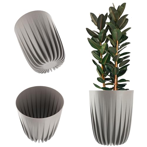 KADAX Blomkruka av plast med naturmaterial, moderna planteringskrukor, växtkruka med geometriskt mönster, rund blomkruka med insats, naturlig blomkruka, hög kruka (Ø 25 cm, grå)