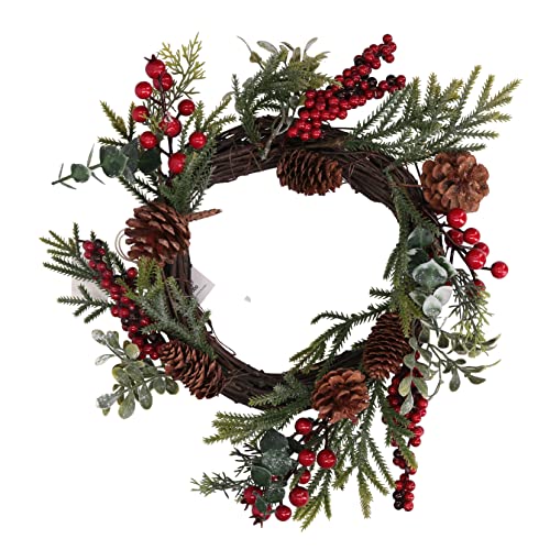 Dekorera krans naturlig jul grön krona gjord av plast med kottar och bär 35cm bred