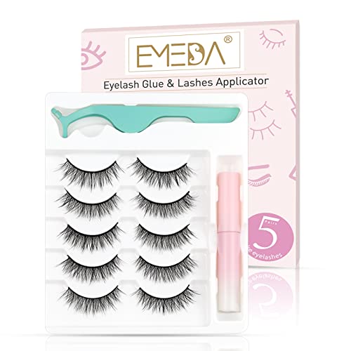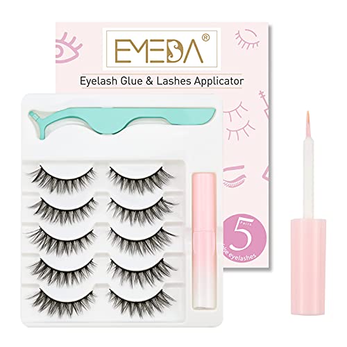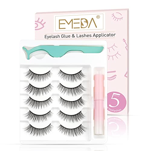EMEDA 3D-falska ögonfransar med lim, Faux mink eyelashes, 5 par Naturliga fransar med lim och applikator, Multipack Fluffiga tjocka långa ögonfransar false lashes with glue and tweezers